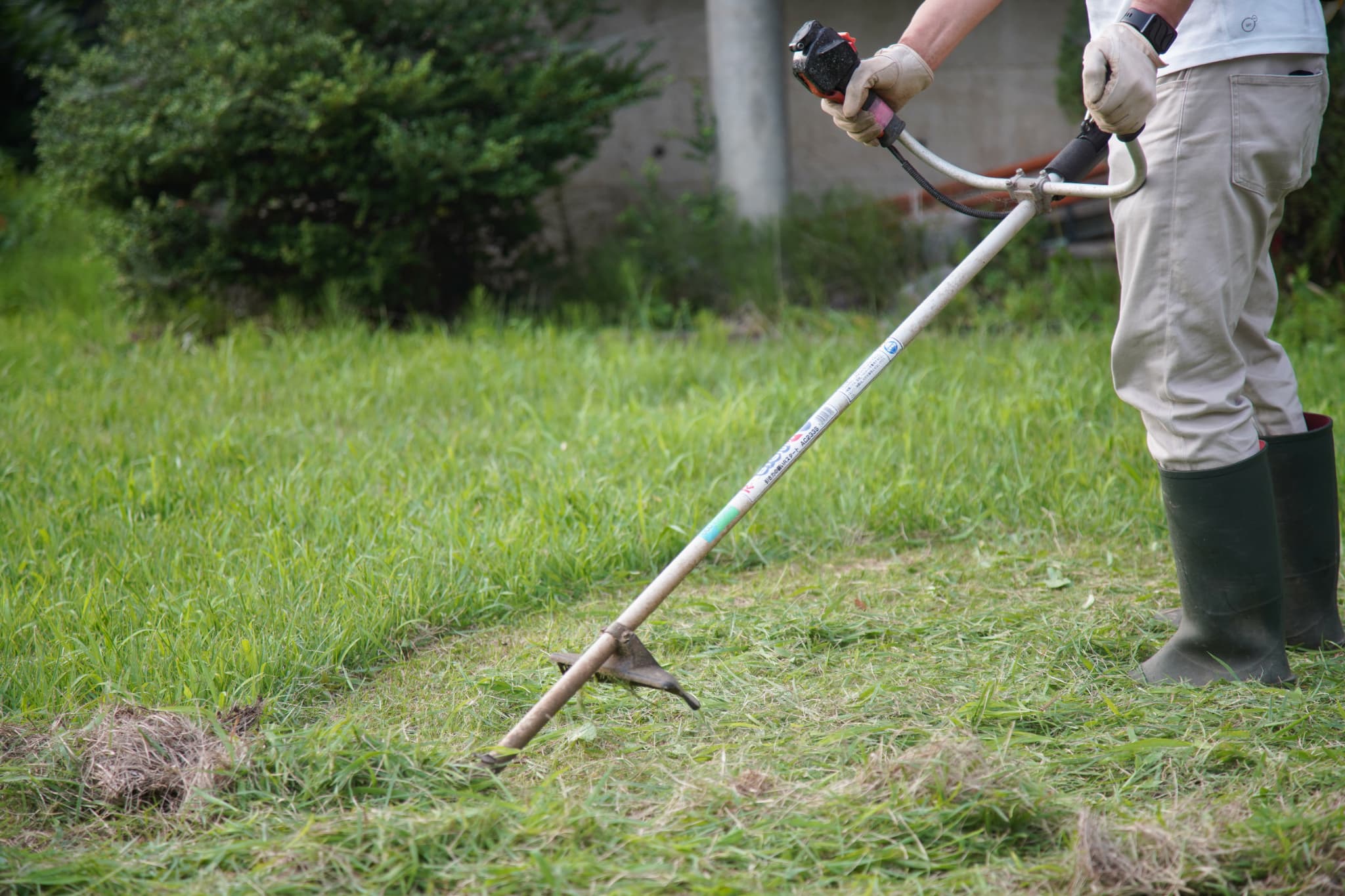 広い敷地でも、草刈機を使用して